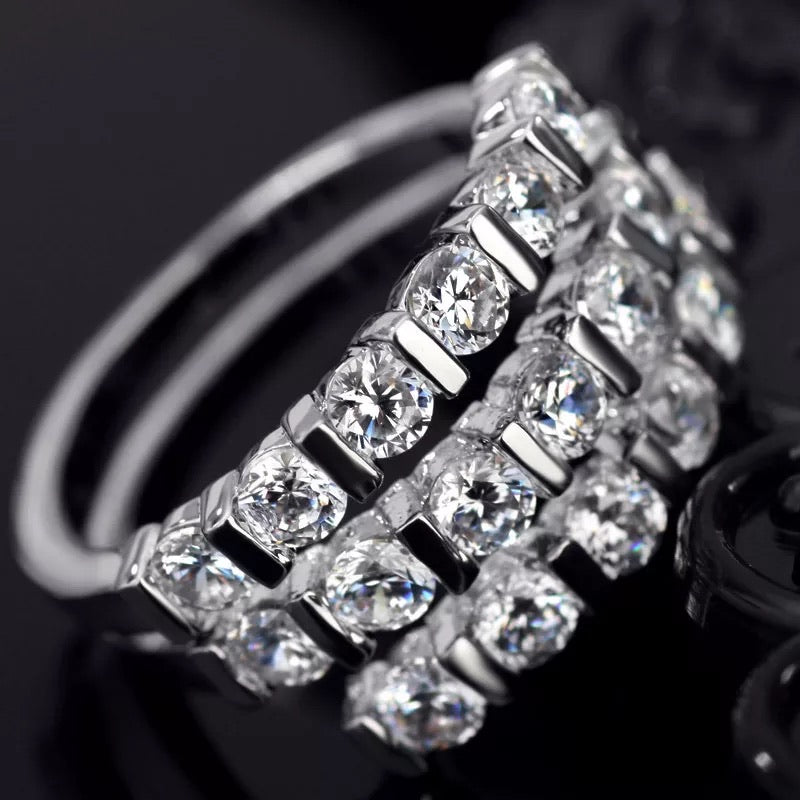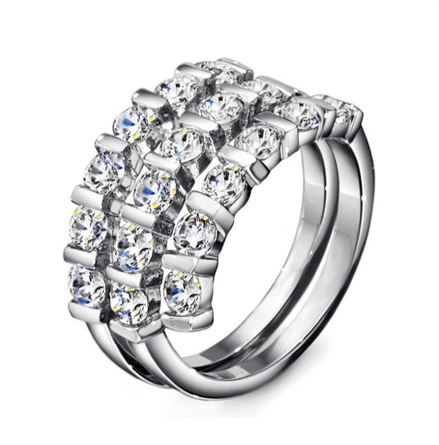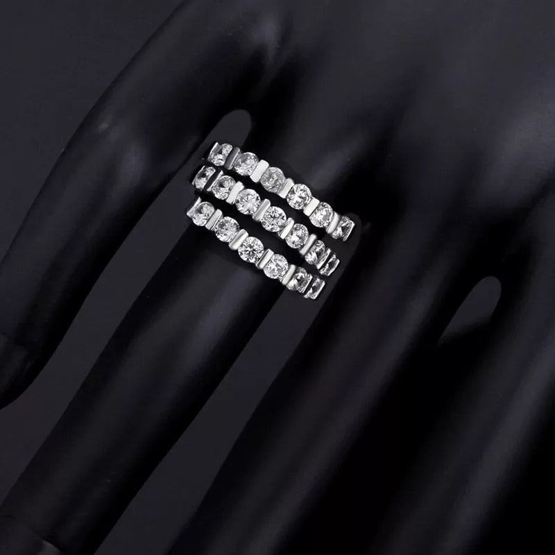 ANILLO PLATEADO 3 FILAS CRISTALES, TALLAS: 5.5