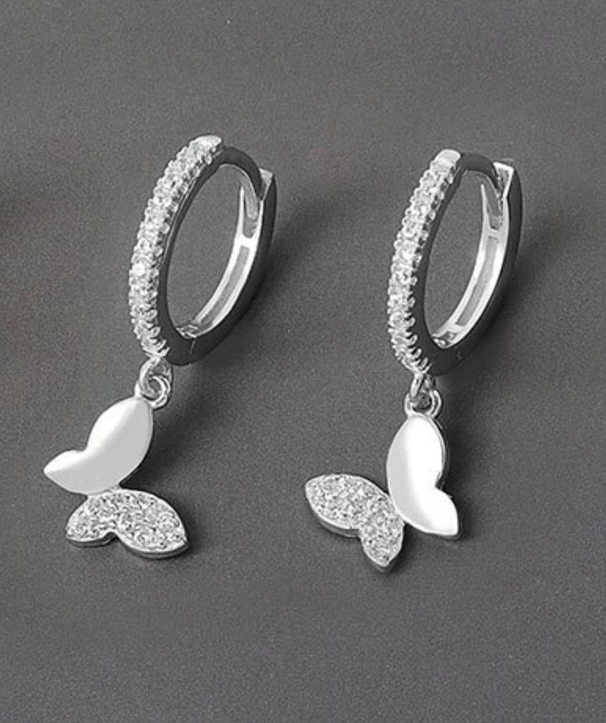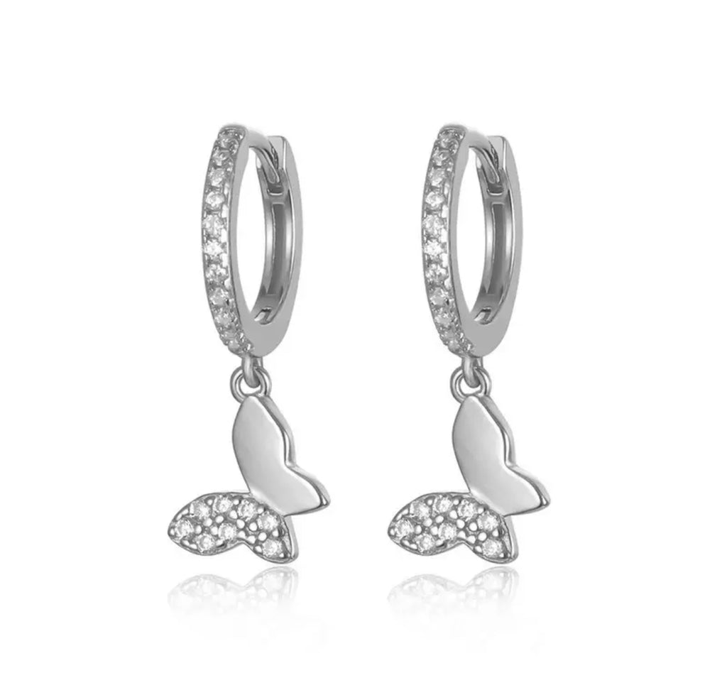 Arracada Plateada Mariposa Cristales Colgante Plata 925