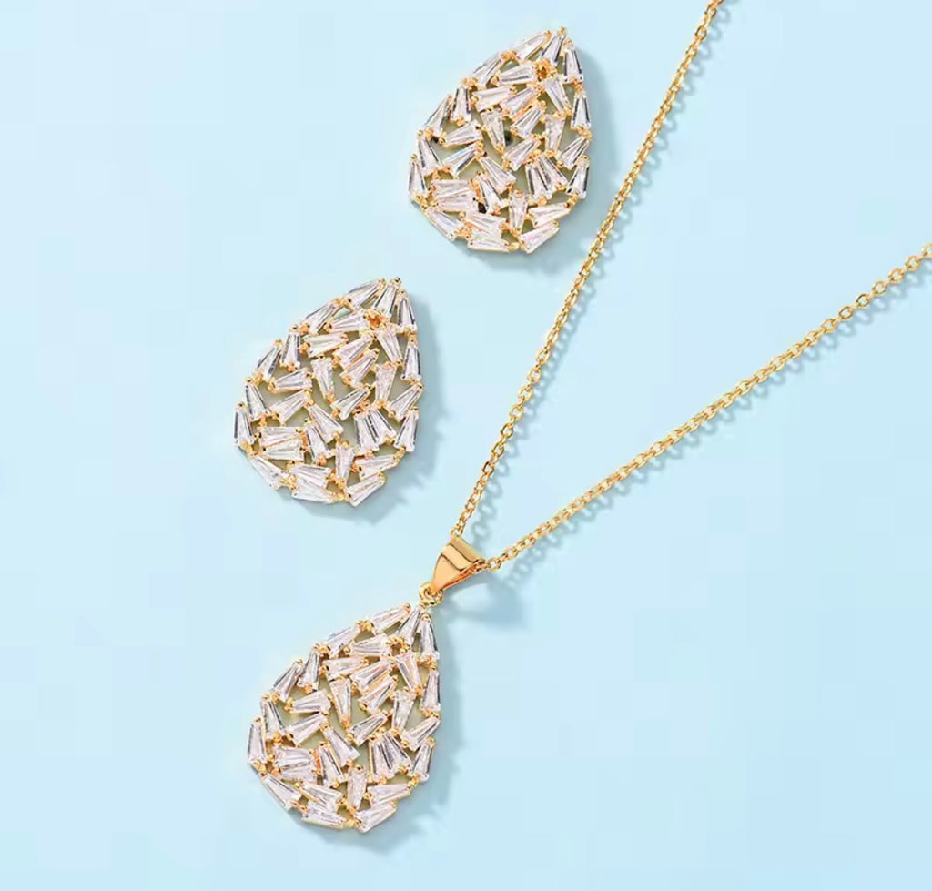SET 2 PIEZAS DORADO GOTA CRISTALES
