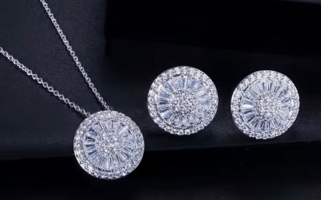 SET 2 PIEZAS PLATEADO CÍRCULO CRISTALES