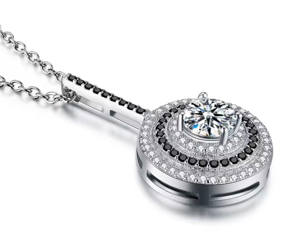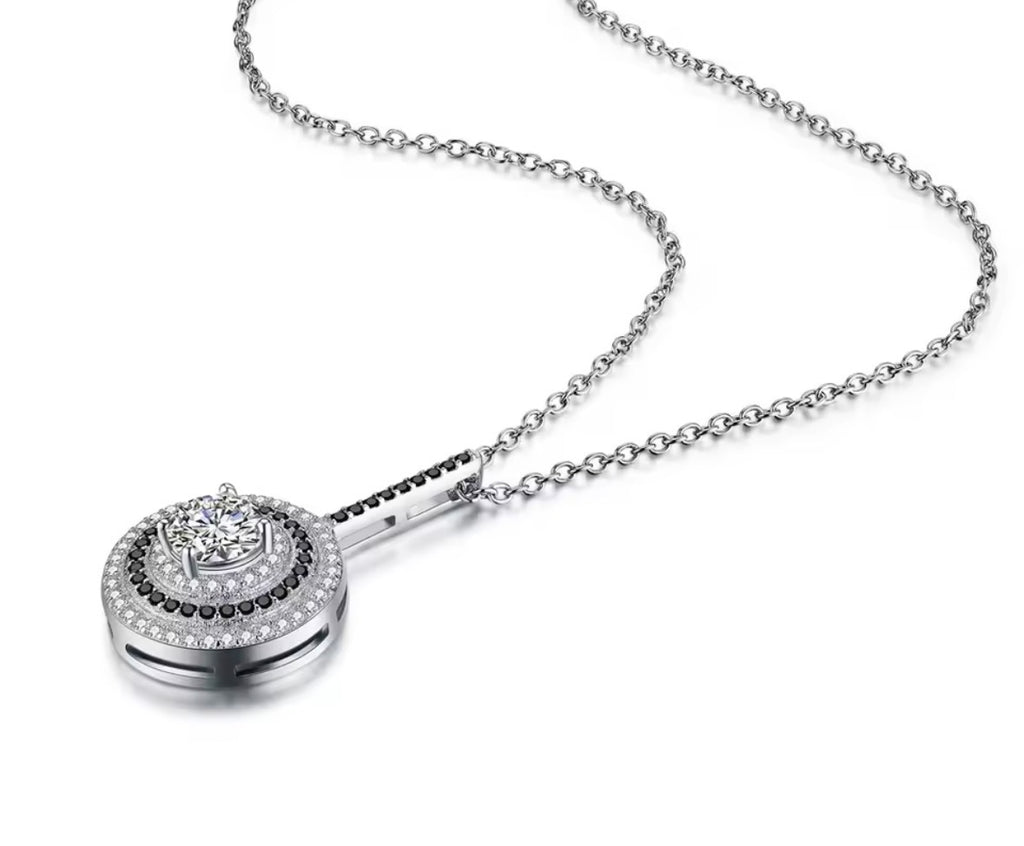 SET 2 PIEZAS PLATEADO CÍRCULO COLGANTE CRISTALES NEGROS PLATA 925
